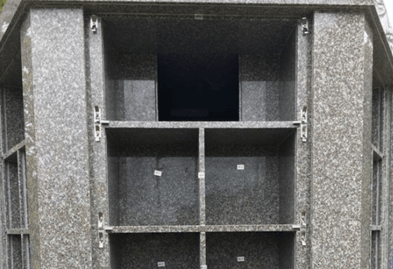 Our columbaria are manufactured by skilled craftsmen using only the highest quality granite in a virtually all granite construction. Each columbarium incorporates inner shutters with an option to add an additional set of outer shutters. All shutters are secured in vertical channels in the granite. The shutters are serviced using suction cups - no additional hardware is required. The channel design provides superior water and dust protection. As well, the optional double shutter would add an extra layer of comfort in protecting the cremated remains from the elements. The whole unit incorporates stainless steel pins, stainless steel angles, and construction grade epoxy for any joinery.